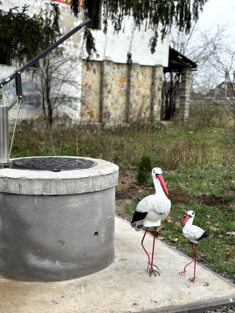 Ініціаторки проєкту Любов Базалійська та Юлія Мисак-Козак розповіли, що шлях був непростий. Коли не вдалося погодити свердловину, команда не здалася: «Стара криниця вже не могла служити, очищення не допомогло б. Тож було прийнято рішення — копати нову! Ми висадили рослини, облаштували територію та прикрасили її лелеками. Вода смачна, чиста — дітям подобається».