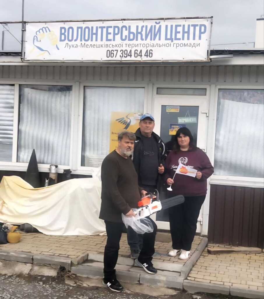 Керівниця Оратівського осередку Надія Мельник привезла у волонтерський центр села Балабанівка тканину для плетіння маскувальних сіток. Голова Лука-Мелешківського – Олександр Комісарчук – на запит 77-ої окремої аеромобільної бригади придбав та надіслав військовим бензопилу.